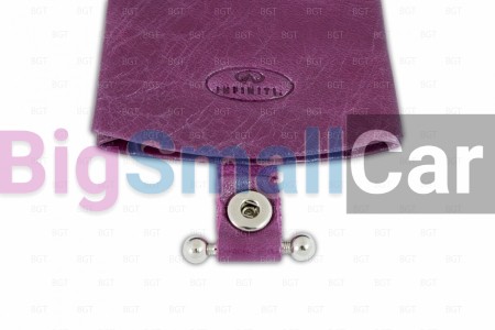 Брелок (кожаный чехол) из натуральной кожи, фиолетового цвета с логотипом Infiniti. . Метод нанесения – тиснение.Максимальный размер 120 мм х 70 ммБрелок оснащен кожаным ремешком, на одном конце которого крепится металлическое кольцо для ключей, а на другом расположена кнопка для фиксации ключей внутри чехла.Продается в стильной подарочной коробке с фирменной оберточной защитной тканью внутри. Вариант товара: